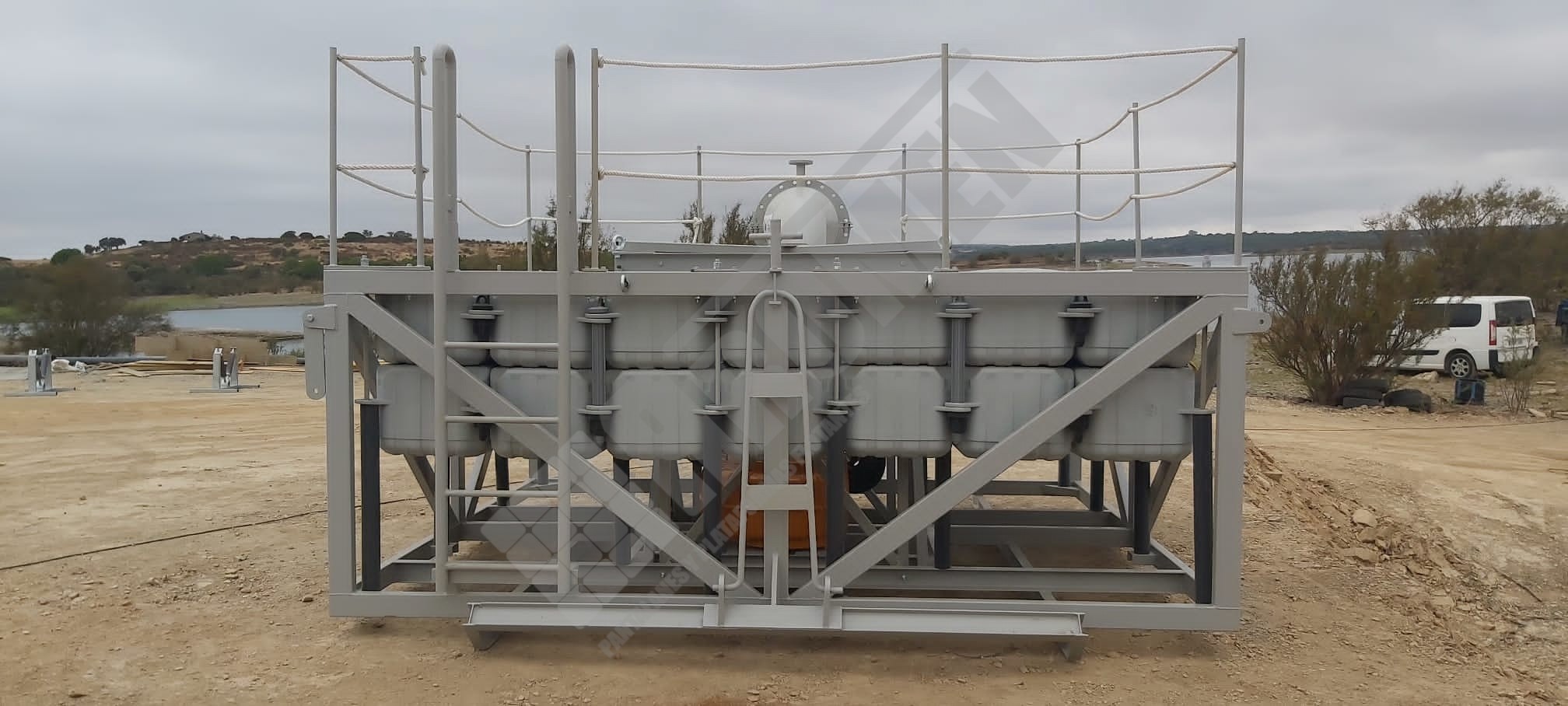Plataforma trabajos en laguna