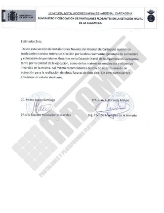 Del 12 al 19 de Enero 2016, Aromen instaló en la Estación Naval de La Algameca en Cartagena, más de 400m2 de pantalanes para nuestra Armada y los diferentes cuerpos establecidos en dicha base.