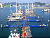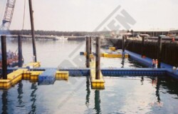 Instalaciones de pantalanes flotantes para puertos deportivos, clubes náuticos, marinas, muelles flotantes, puertos pesqueros y puertos privados, llevados a cabo mediante el Sistema Modular Flotante de Aromen.