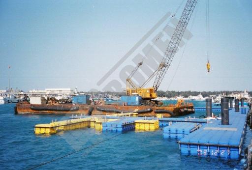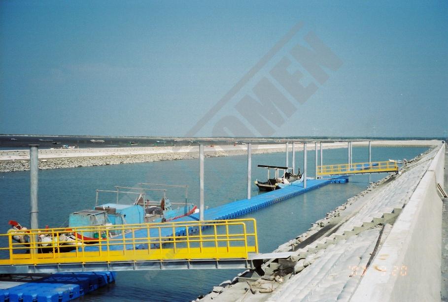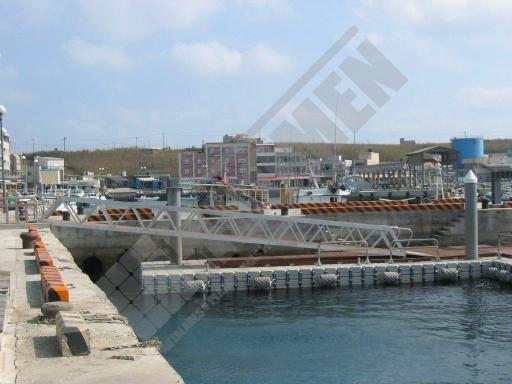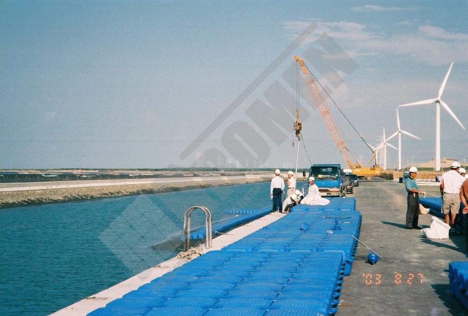 Instalaciones de pantalanes flotantes para puertos deportivos, clubes náuticos, marinas, muelles flotantes, puertos pesqueros y puertos privados, llevados a cabo mediante el Sistema Modular Flotante de Aromen.