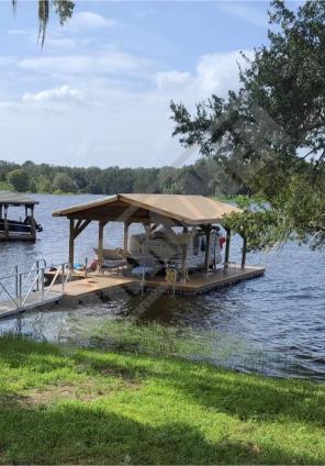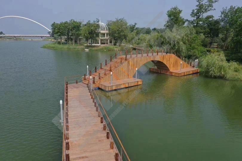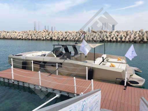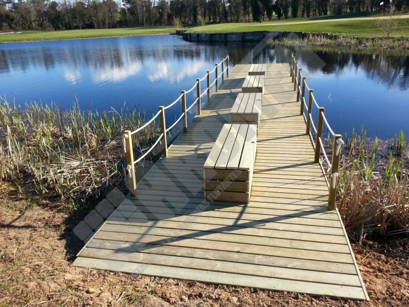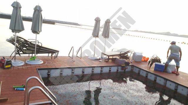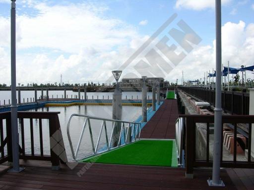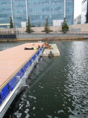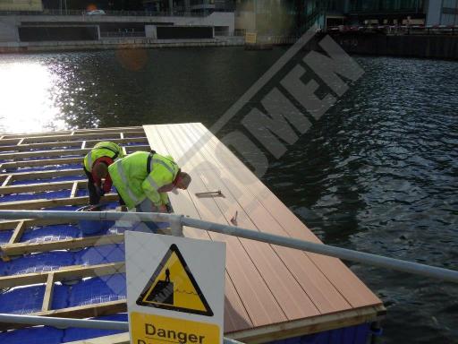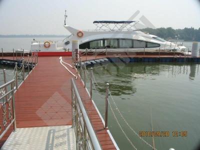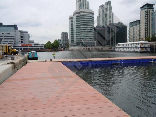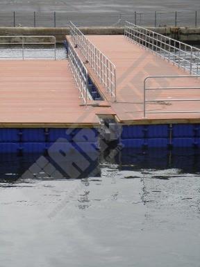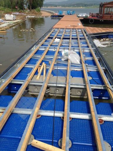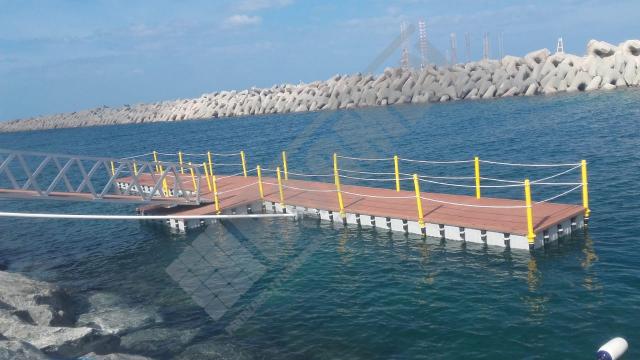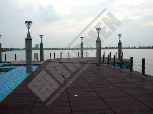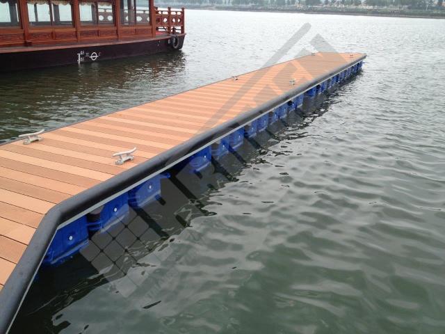 Plataformas flotantes y pantalanes flotantes de cubos de polietileno con cubierta de madera natural o con madera sintética wpc (wooden plastic composite).