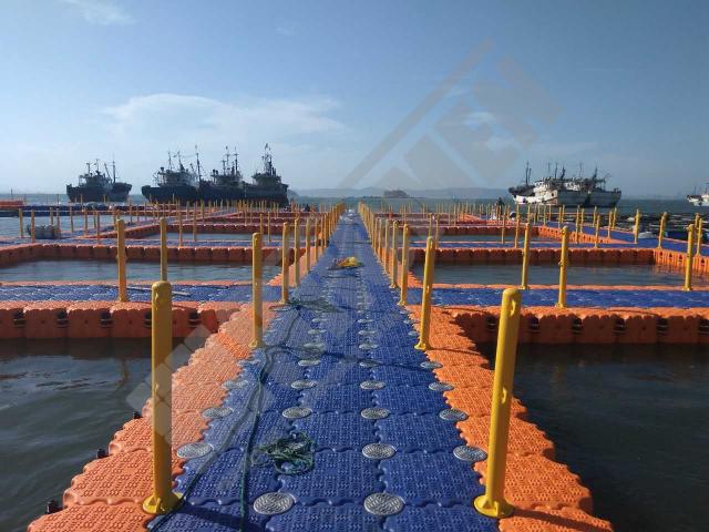 Nuestras soluciones de pantalanes flotantes para piscifactorías y granjas marinas están diseñadas para ofrecer estructuras seguras, duraderas y versátiles que facilitan la producción acuícola. Ideales para sectores como la cría de peces, moluscos y otros recursos marinos, nuestras plataformas modulares proporcionan un soporte estable para jaulas, pasarelas y equipamiento operativo. Fabricadas con materiales resistentes a la corrosión y a las condiciones del mar, garantizan un rendimiento fiable y eficiente, adaptándose a las necesidades específicas de cada proyecto acuícola.