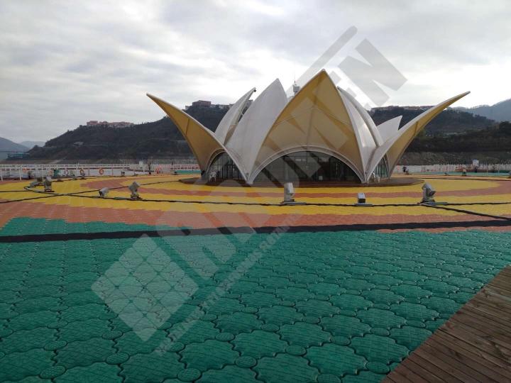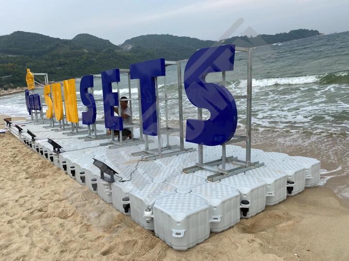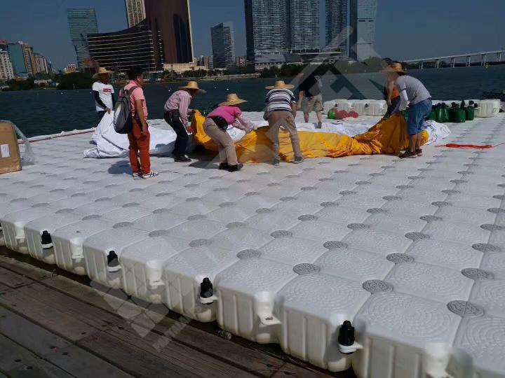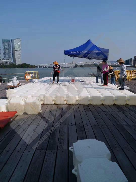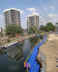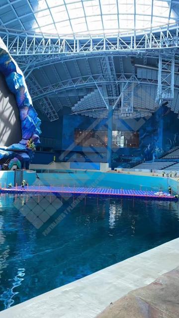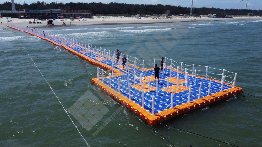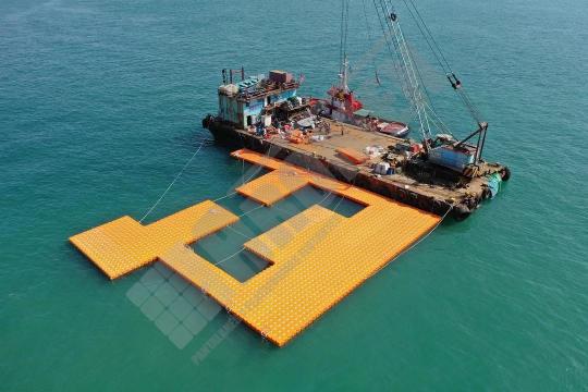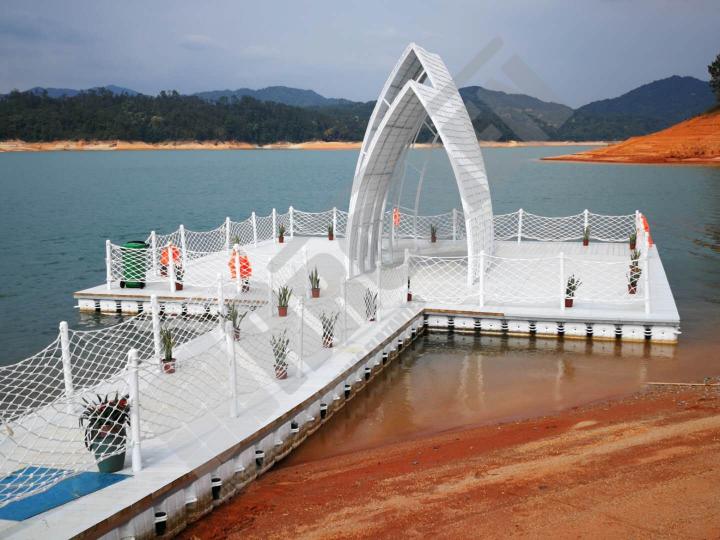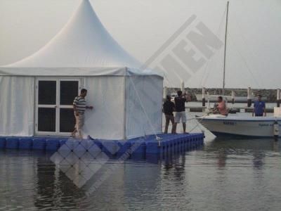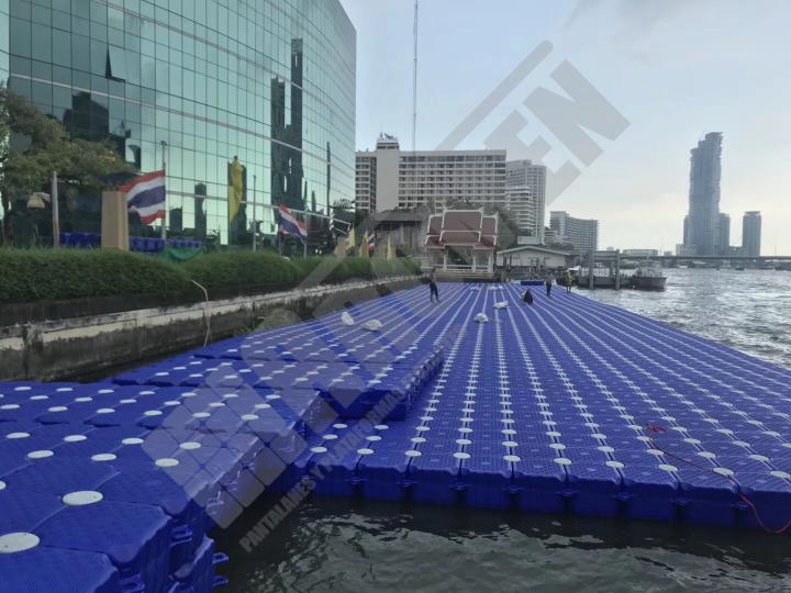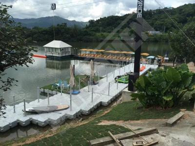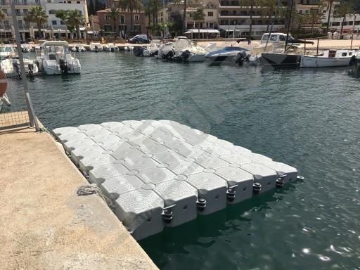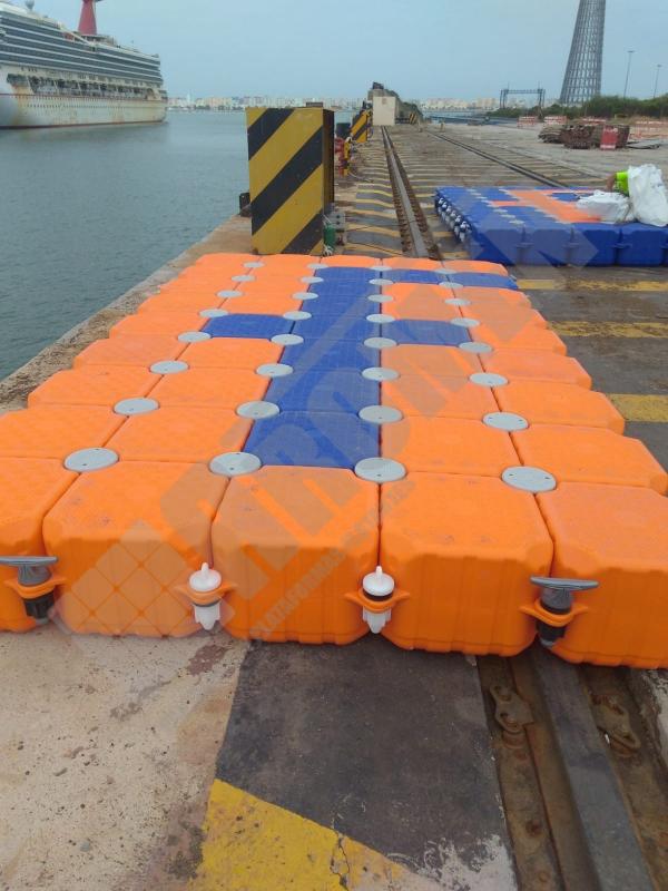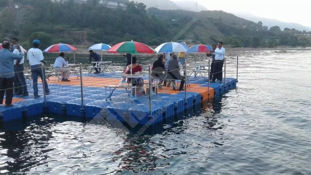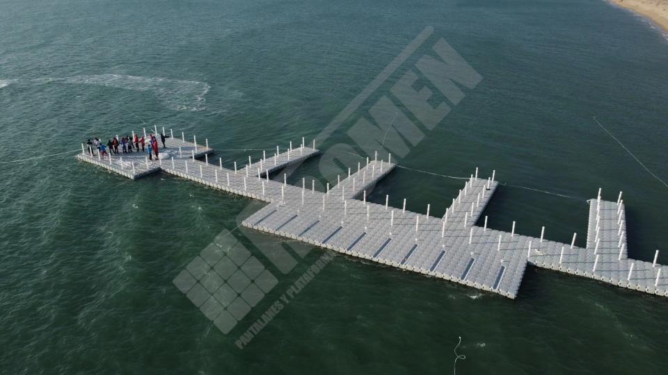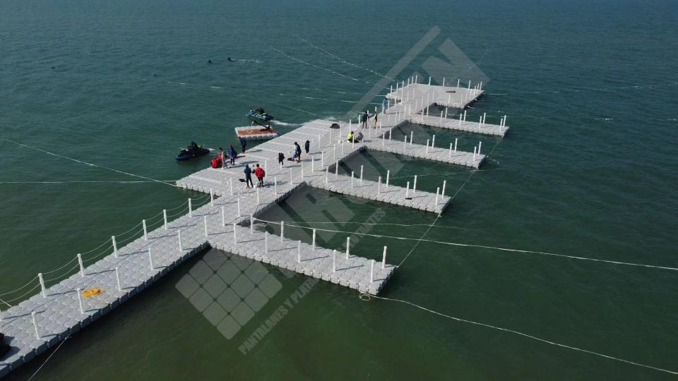 Selección de plataformas flotantes para diferentes usos. Entre ellos con nuestro Sistema Modular Flotante se pueden construir, plataformas para helicóptero, plataformas de trabajo, puentes flotantes, plataformas para viviendas flotantes, plataformas para playa, piscinas flotantes, escenarios flotantes, plataformas para remolques, etc.