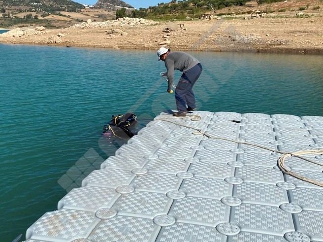 En Pantalanes Flotantes ofrecemos plataformas especializadas para trabajos de buceo profesional, diseñadas para proporcionar estabilidad, seguridad y accesibilidad en operaciones subacuáticas. Nuestras soluciones modulares permiten adaptarse a diferentes entornos y necesidades de obra, facilitando tareas como inspecciones, mantenimiento, instalación de estructuras o apoyo logístico desde la superficie. Construidas con materiales resistentes y fáciles de montar, nuestras plataformas optimizan el trabajo de los buzos y equipos técnicos, garantizando eficiencia y tranquilidad en cada proyecto.